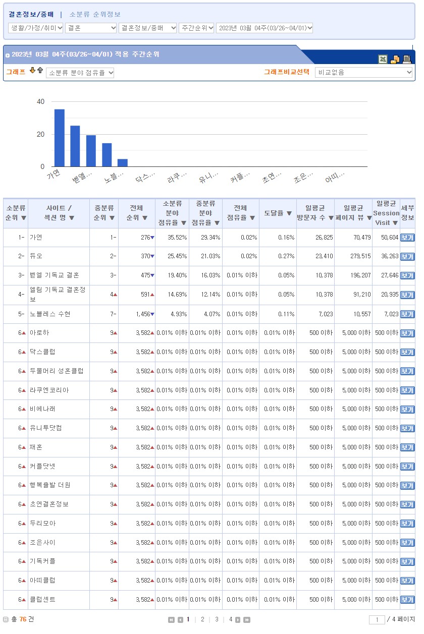 ·©Å°´åÄÄ °áÈ¥Á¤º¸/Á߸Šȸ»ç ºÐ¾ß 23³â 3¿ù 4ÁÖÂ÷ °áÈ¥Á¤º¸È¸»ç ¼øÀ§ 1À§ °¡¿¬ °áÈ¥Á¤º¸, 2À§ µà¿À, 3À§ º¦¿¤ ±âµ¶±³ °áÈ¥