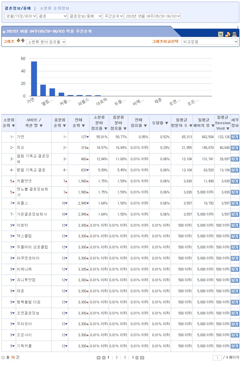 ·©Å°´åÄÄ °áÈ¥Á¤º¸/Á߸Šȸ»ç ºÐ¾ß 23³â 5¿ù 4ÁÖÂ÷ °áÈ¥Á¤º¸È¸»ç ¼øÀ§ 1À§ °¡¿¬ °áÈ¥Á¤º¸, 2À§ µà¿À, 3À§ ¿¤¸² ±âµ¶±³ °áÈ¥Á¤º¸
