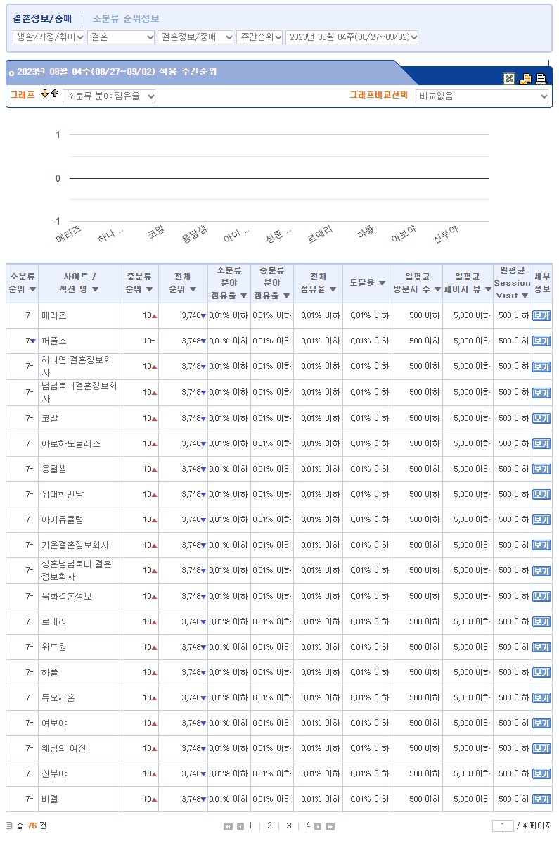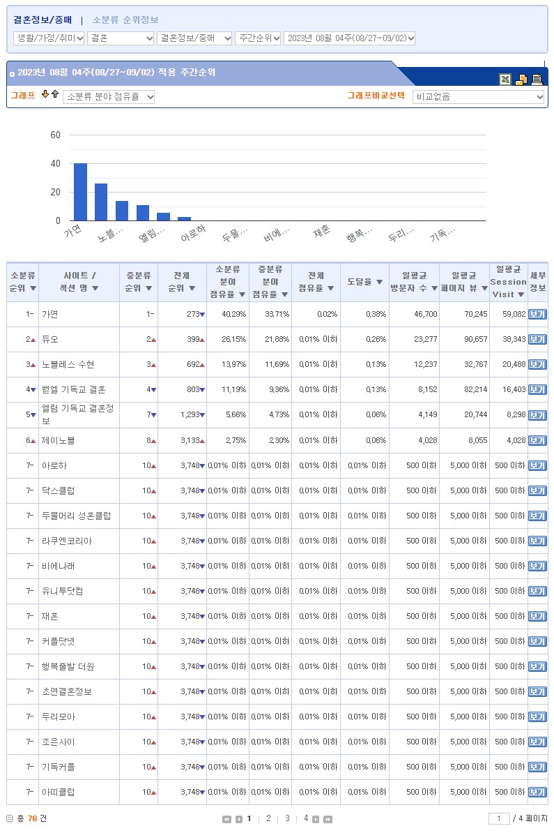 ·©Å°´åÄÄ °áÈ¥Á¤º¸/Á߸Šȸ»ç ºÐ¾ß 23³â 8¿ù 4ÁÖÂ÷ °áÈ¥Á¤º¸È¸»ç ¼øÀ§ 1À§ °¡¿¬ °áÈ¥Á¤º¸, 2À§ µà¿À, 3À§ ³ëºí·¹½º ¼öÇö